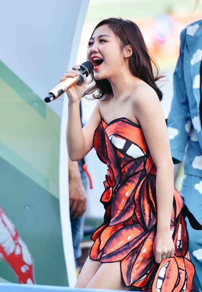 Không chỉ gây ấn tượng giọng hát khỏe khoắn, trong lần biểu diễn này, nữ ca sĩ gợi cảm, quyến rũ cũng khiến cho khán giả phấn khích khi khoe khả năng vũ đạo chuyên nghiệp, điêu luyện.
